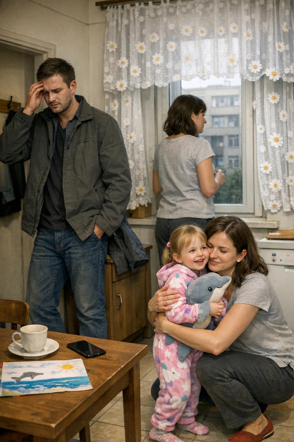 A konyha, amely eddig az otthonosság szigete volt, hirtelen idegennek hatott. A fehér, margarétás függöny, amit tavaly választott, lágyan mozgott a huzatban. Az asztalon ott állt a félig kiürült teásbögre, mellette Lilla rajza: hárman kézen fogva egy kék tengerpart előtt. Eszter gyomra összeszorult a látványtól.