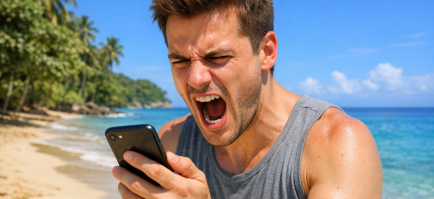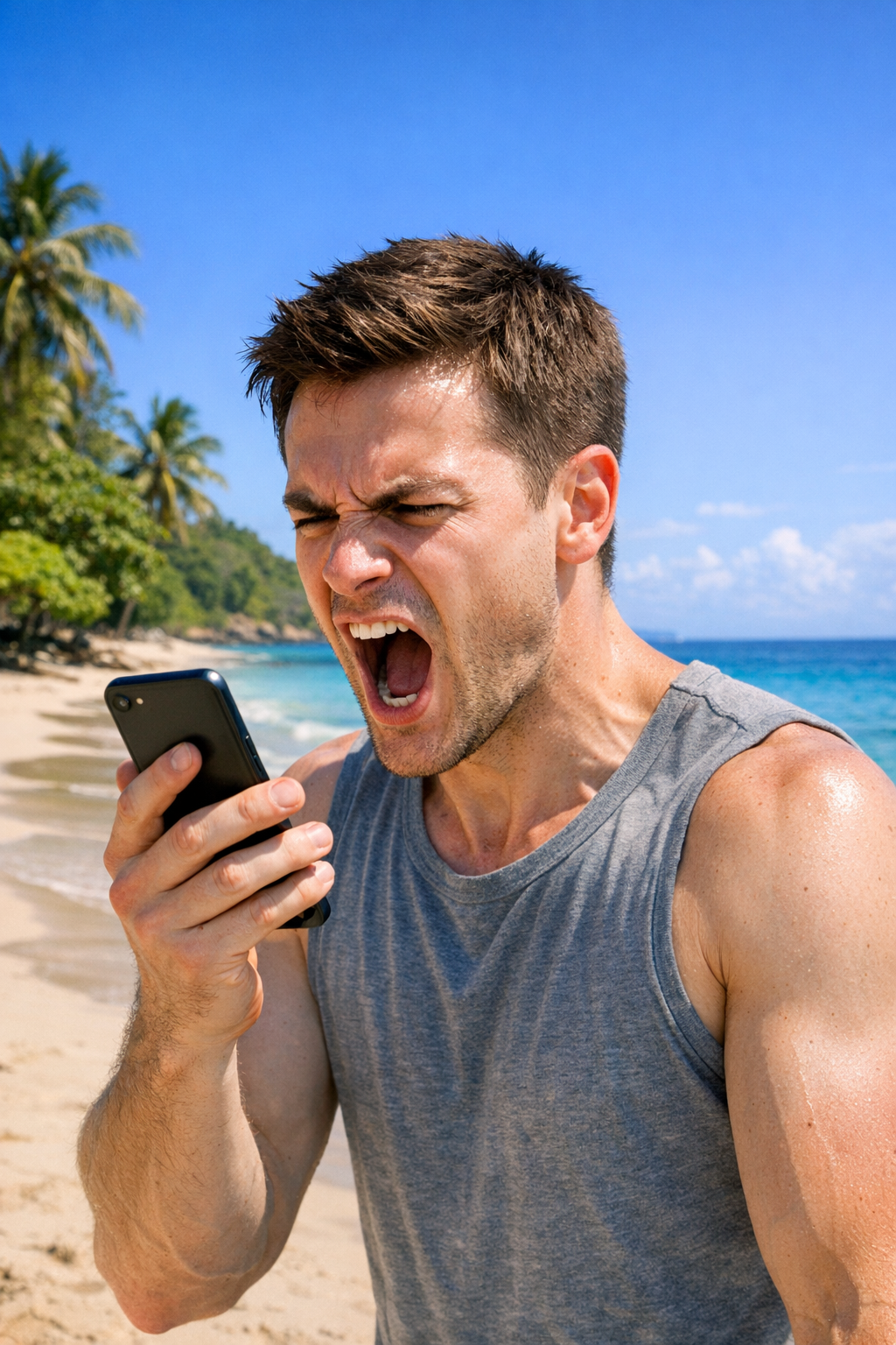Eszter elfogadta. A kijelzőn Gábor kipirult arca jelent meg, mögötte pálmafák lengedeztek.