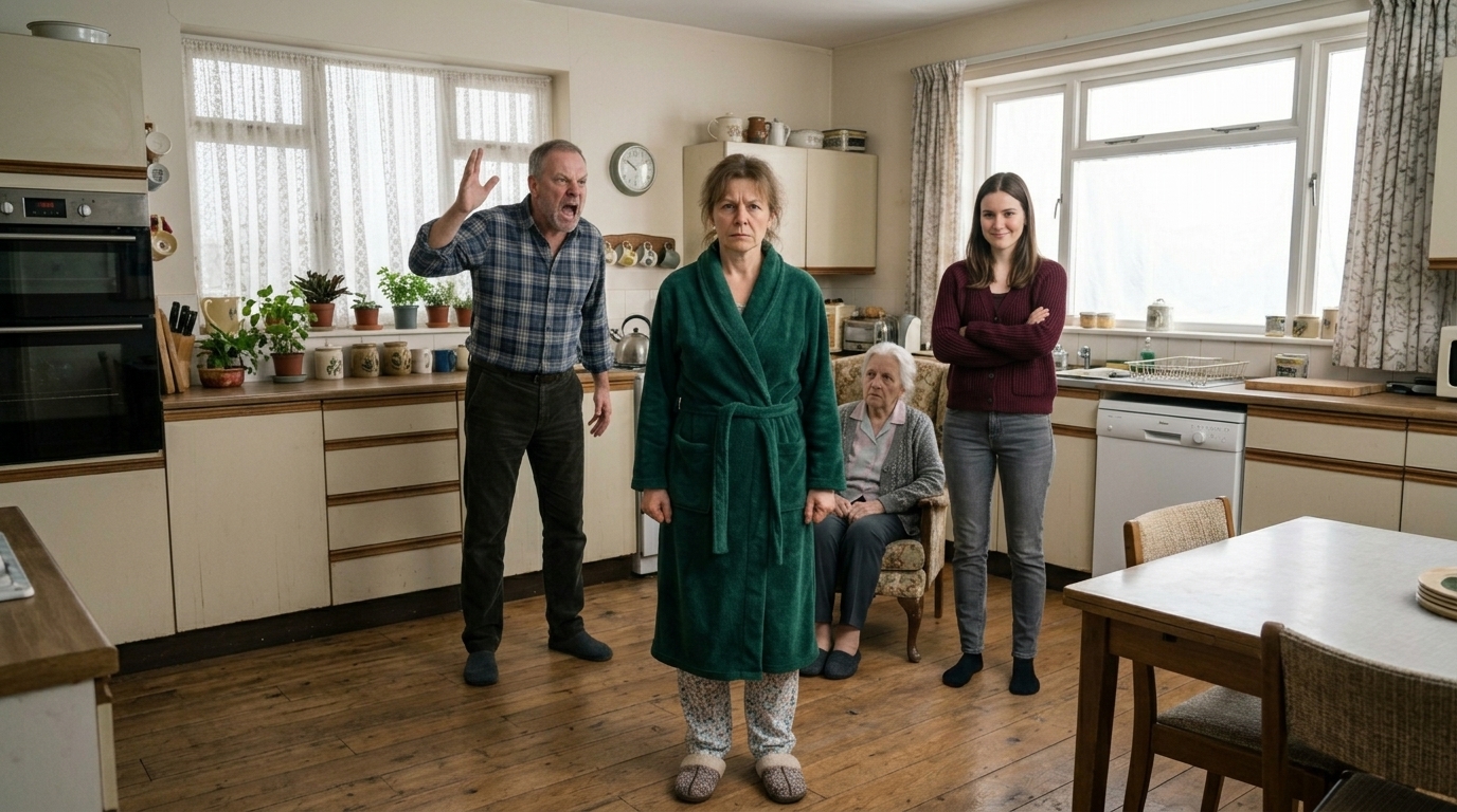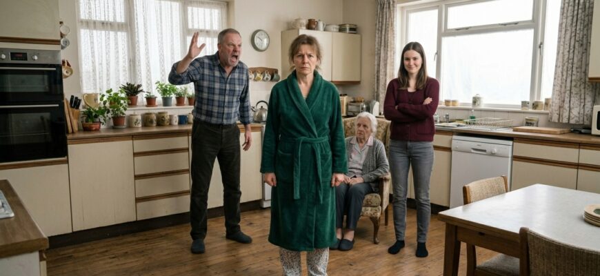 – Azonnal menj, és tedd rendbe anyámat! Gondozásra szorul, te meg csak bámulod azt az ostoba műsort! – morogta, miközben lerántotta a fogasról a kopott kabátját.