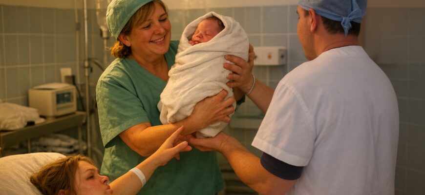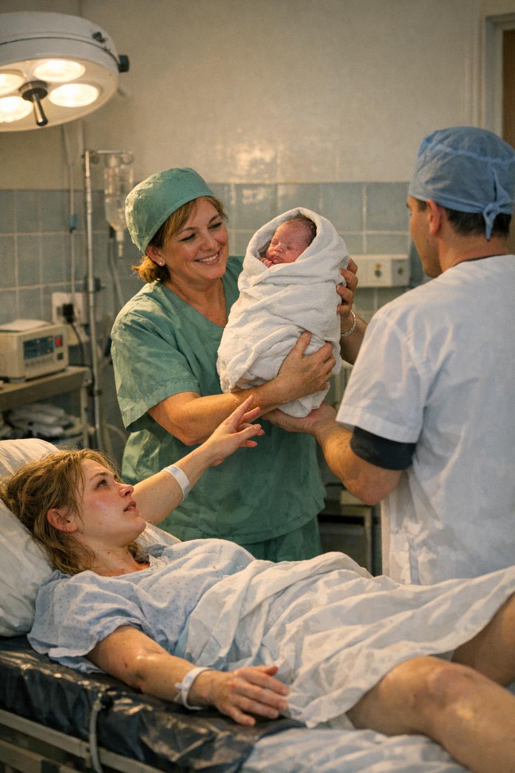 Emese, akit teljesen kimerített a vajúdás, alig tudott a gyermekére fókuszálni. Mielőtt még igazán szemügyre vehette volna a picit, a bába már tovább is adta valakinek. A csecsemőt gyorsan megvizsgálták, bepólyálták, majd kivitték a szülőszobából.