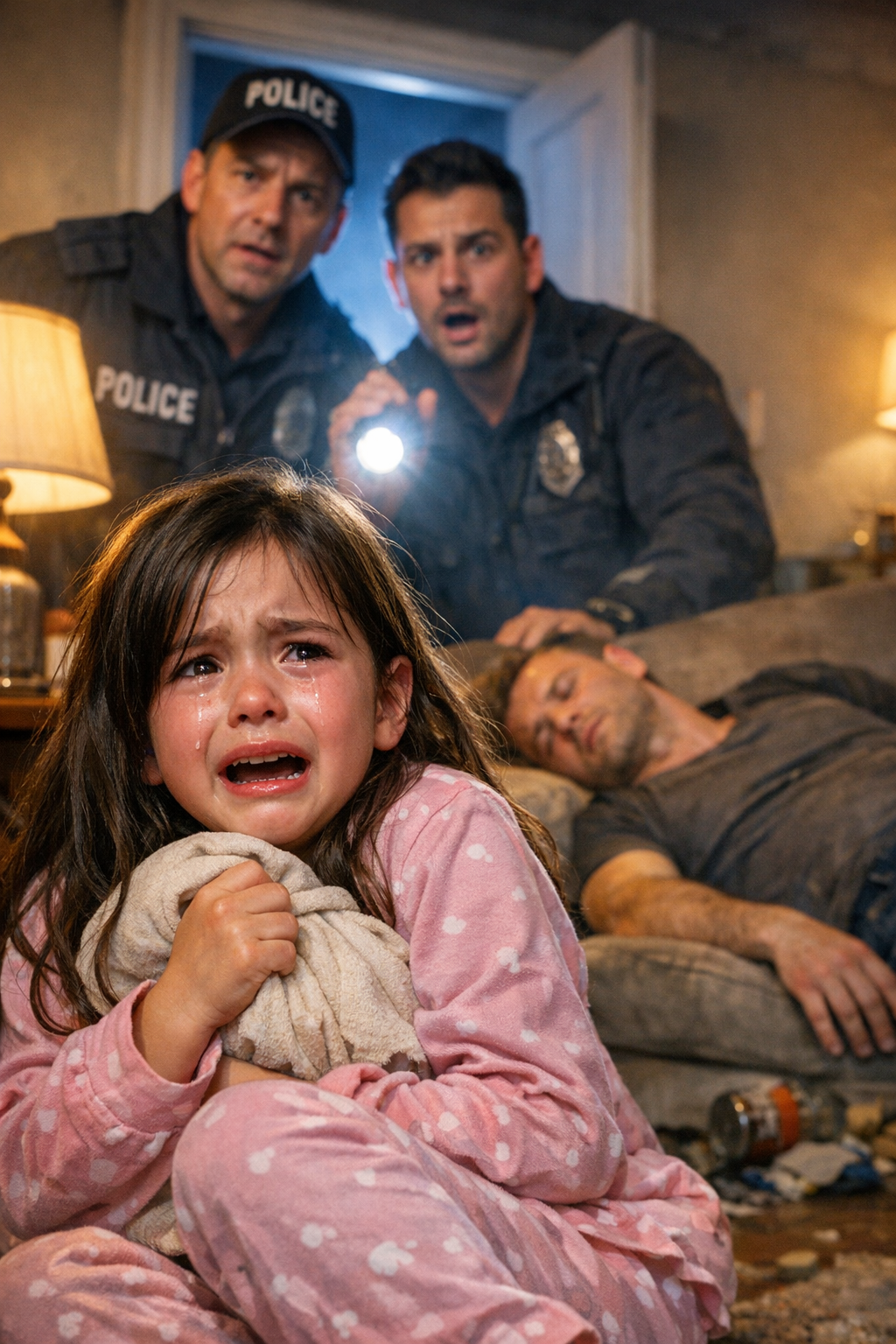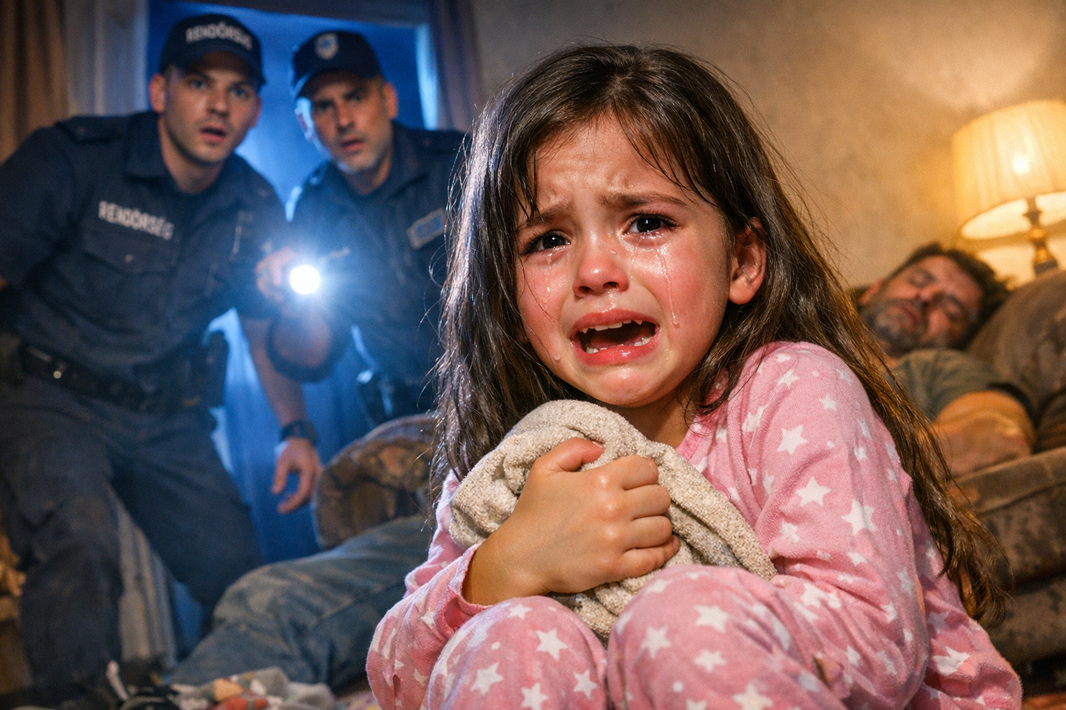 A nappaliban szétszórt üres palackok hevertek, a levegőben dohos, elhanyagolt otthon szaga ült. A keskeny folyosón haladva a zokogás egyre tisztábban vezette őket egy résnyire csukott hálószobaajtóig.