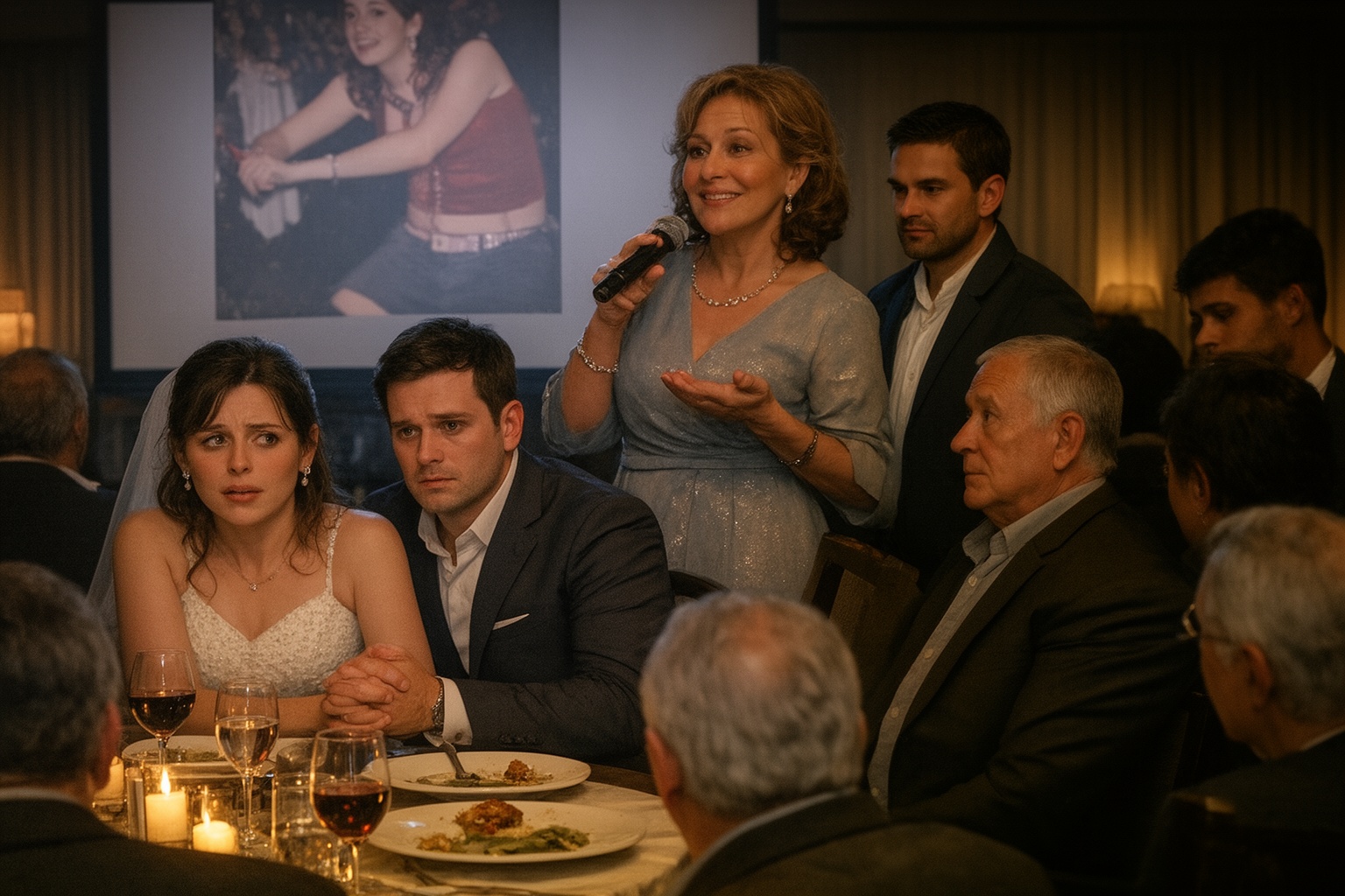 Hajnalka, az anyósom, magához ragadta a mikrofont, hogy koccintáshoz mondjon pár szót. Az arca úgy ragyogott, mintha frissen suvickolták volna fényesre, és az étterem zsúfolásig telt terme egyetlen feszült várakozássá dermedt.