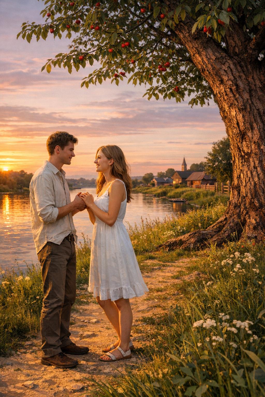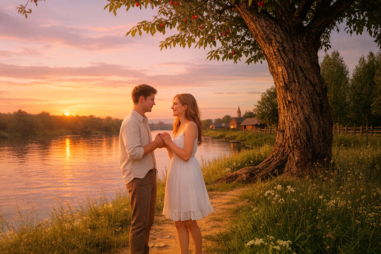 A falu határában sétáltak a folyóparton. A levegő langyos volt, a víz felszínén megcsillant a nap utolsó fénye. Gergő egyszer csak megállt, két kezébe fogta Réka kezét, és nyugodt, szinte ünnepélyes hangon megszólalt: