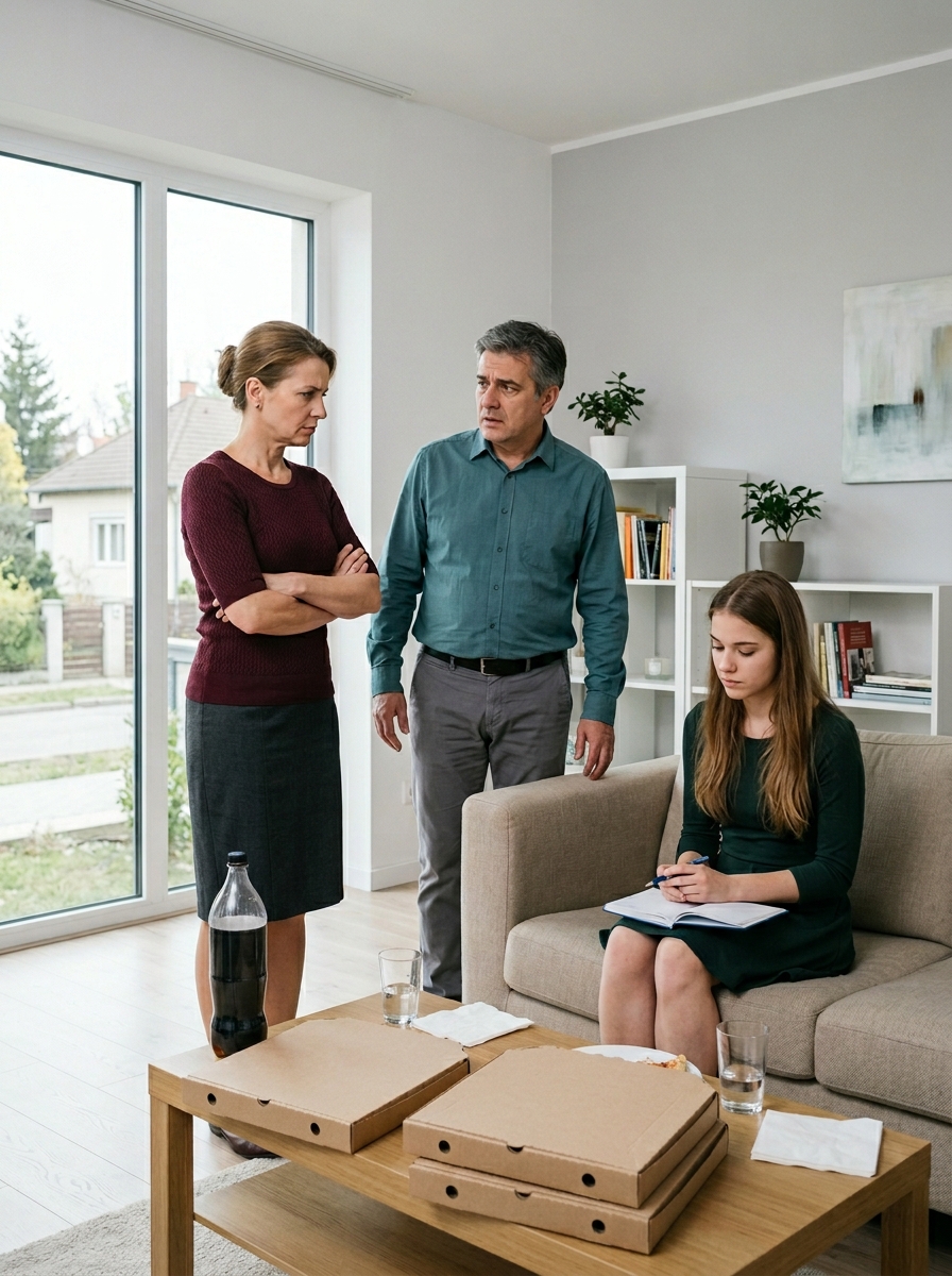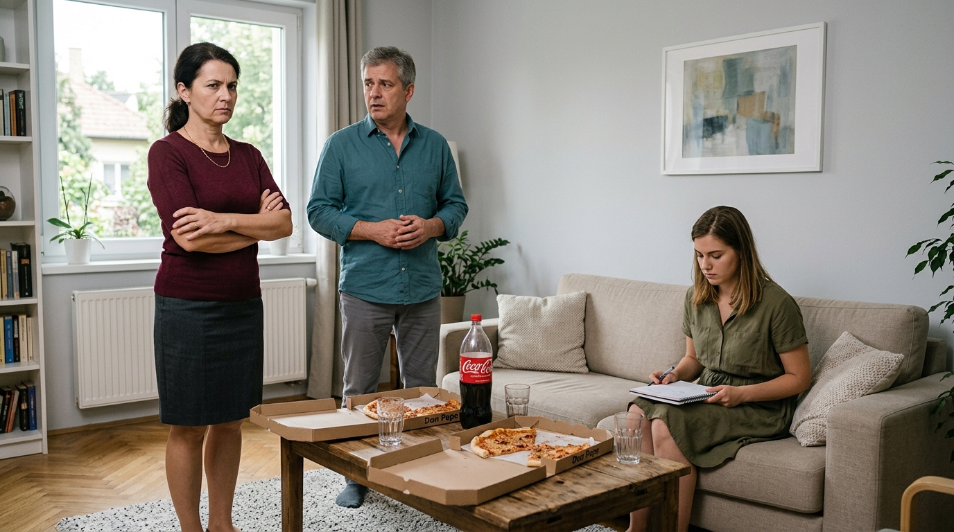 Gábor a nappali közepén állt, karjait összefonta, az arca kemény volt.