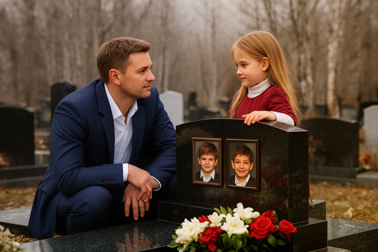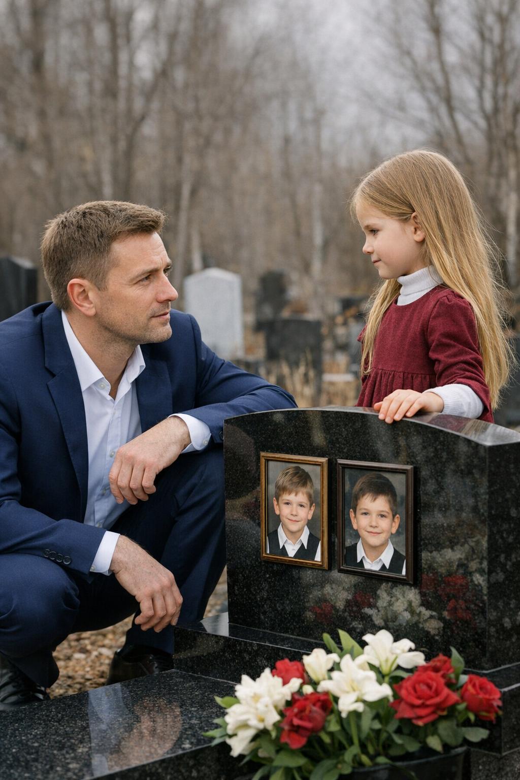 Léptei tompán visszhangoztak a temető csendjében, miközben végigment azon az útvonalon, amelyet már kívülről ismert. Elit parcella, polírozott gránit síremlék, egymás mellett két kisebb sírkő. Az aranyozott betűk hidegen csillogtak: „Máté és Zsombor Kertész, 7 évesek.” A fiai. Az ikrei.