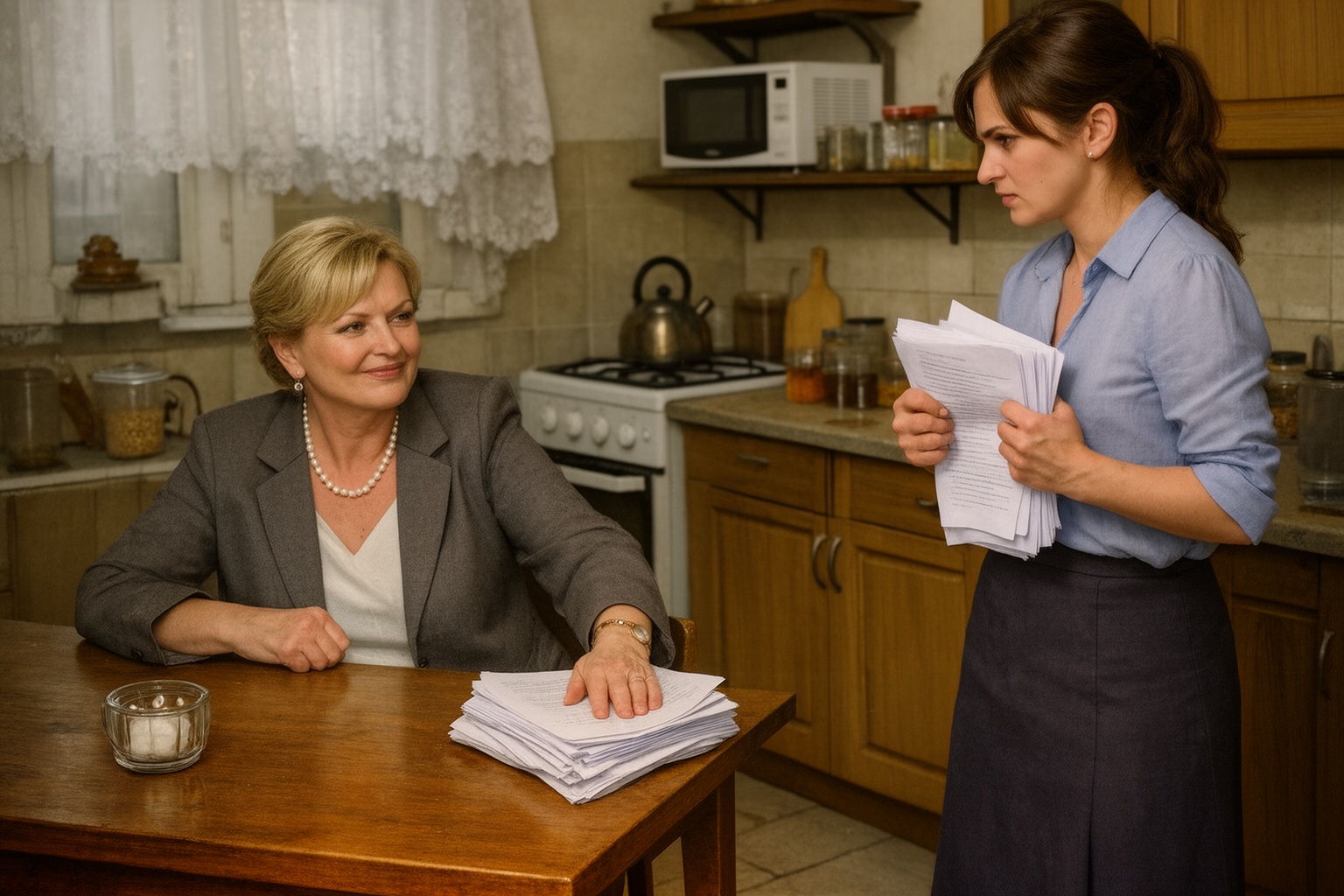 A porcelán hangos csörömpöléssel tört darabokra a konyha kövén, ám Anikó meg sem mozdult. Dermedten állt, mintha gyökeret vert volna a lába, és hitetlenkedve bámulta az elegáns kosztümbe öltözött nőt, aki kopogás és engedély nélkül sétált be az otthonukba. Az anyós kezében egy vastag iratköteg volt, az arcán pedig olyan diadalmas mosoly ült, mintha máris megnyerte volna a csatát.