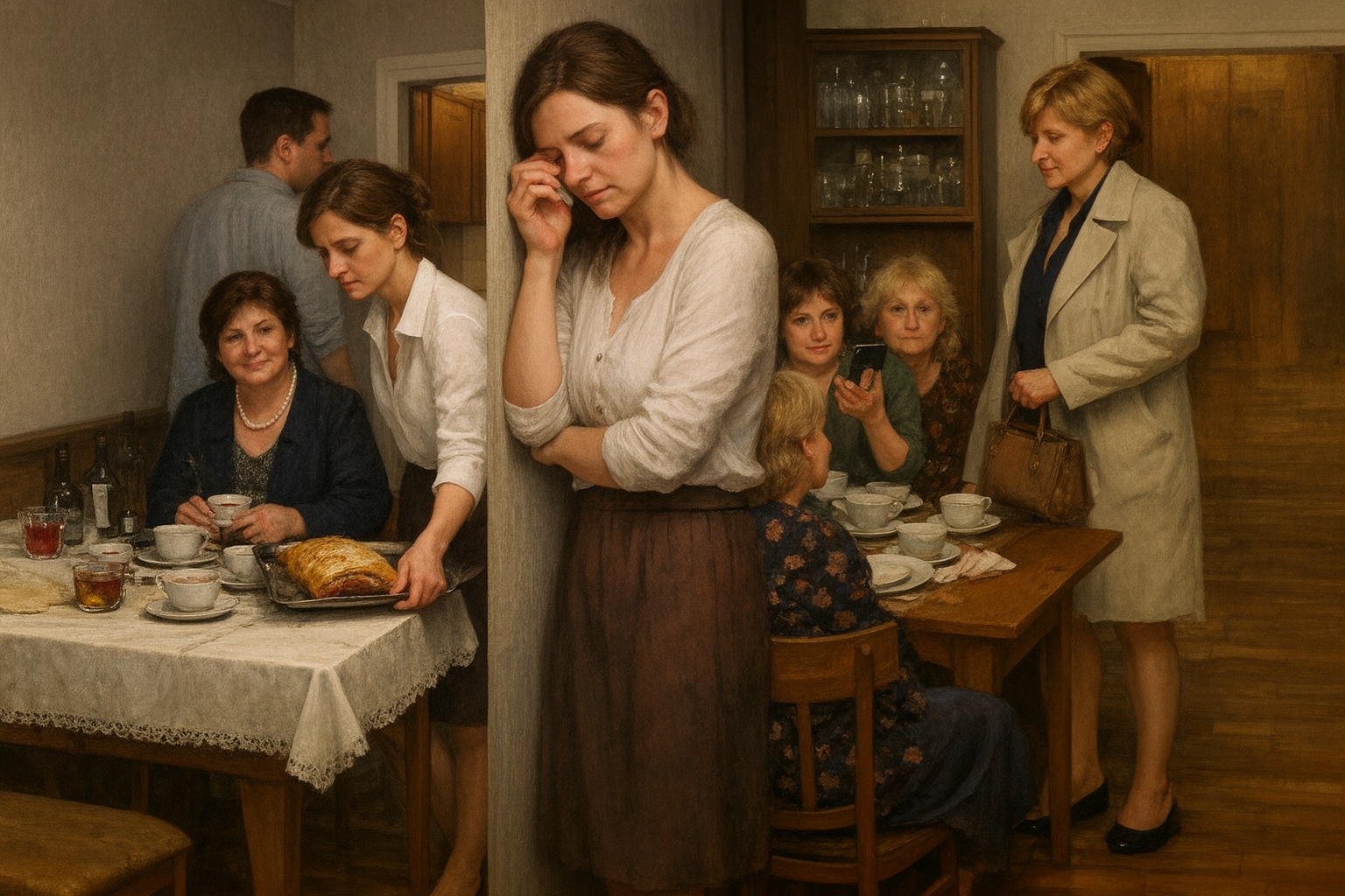Az ajtóban álltam, kezemben a tálcával, rajta a frissen sült, már kihűlő rétesemmel, amire korábban még büszke voltam. Az asztalnál anyósom három barátnője ült: Fruzsina Jakab, Ildikó Kelemen és Barbara Budai. Megmerevedtek a poharaikkal, tekintetük ide-oda járt köztem és Brigitta Kozma között, aki az asztalfőn foglalt helyet, arcán elégedett, diadalmas mosollyal.