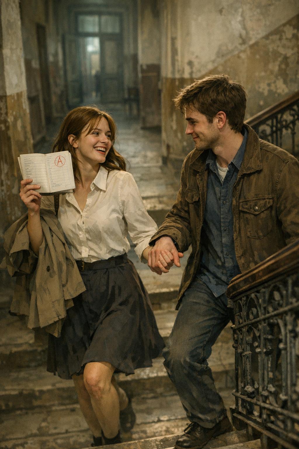 Márton kitárta a nehéz ajtót, és kiléptek az utcára. A kapunál Lilla azonnal meglátta András magas alakját egy csokor virággal, és elpirult.