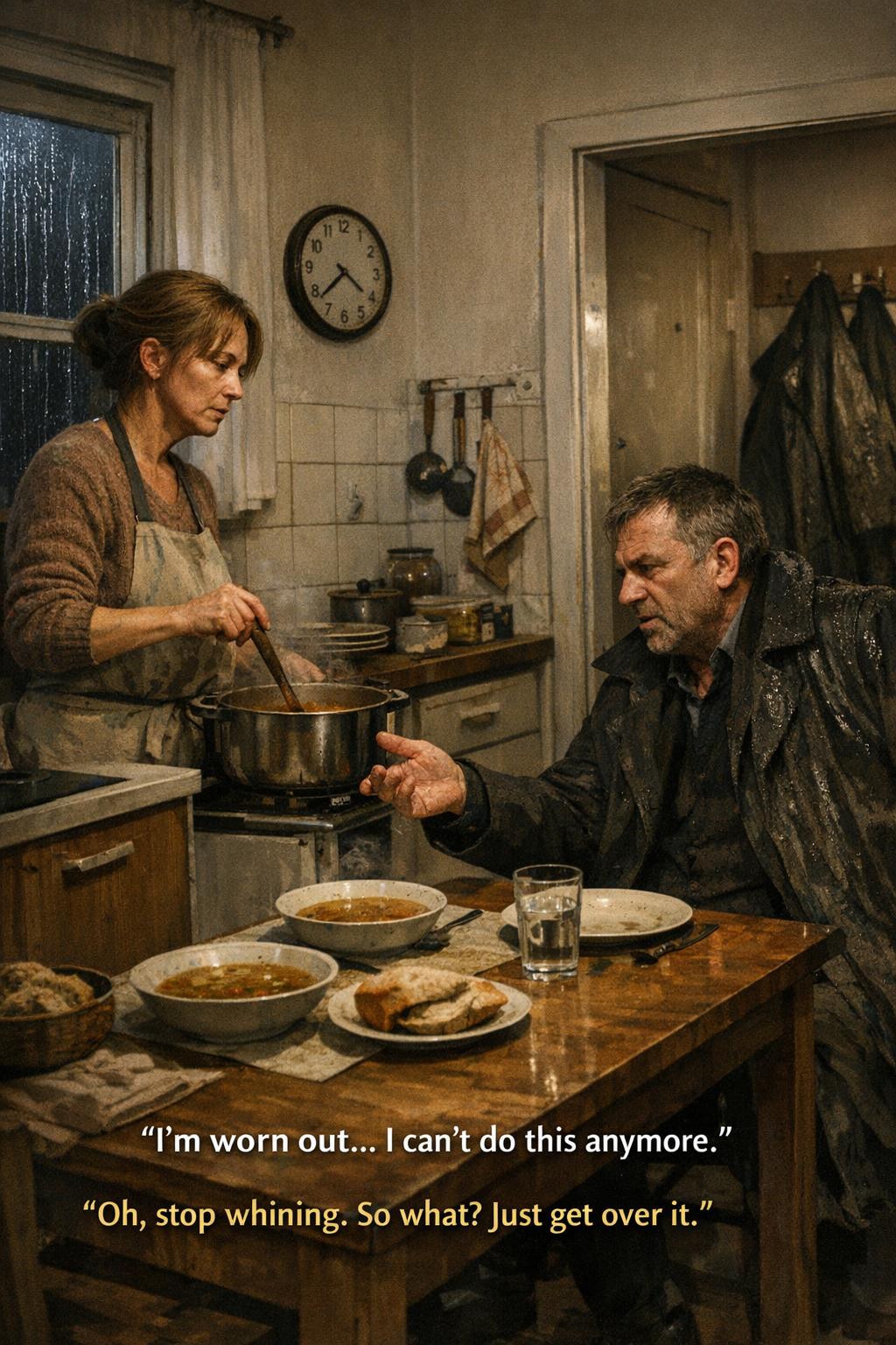 Anna szó nélkül tányérokat tett az asztalra, majd kimérte a levest. A fazékból felszálló gőzben kapor és petrezselyem illata keveredett. Leült a férjével szemben, és lopva figyelte az arcát: a szeme körül mélyebb ráncok rajzolódtak ki, a halántékán pedig egyre több volt az ősz hajszál.