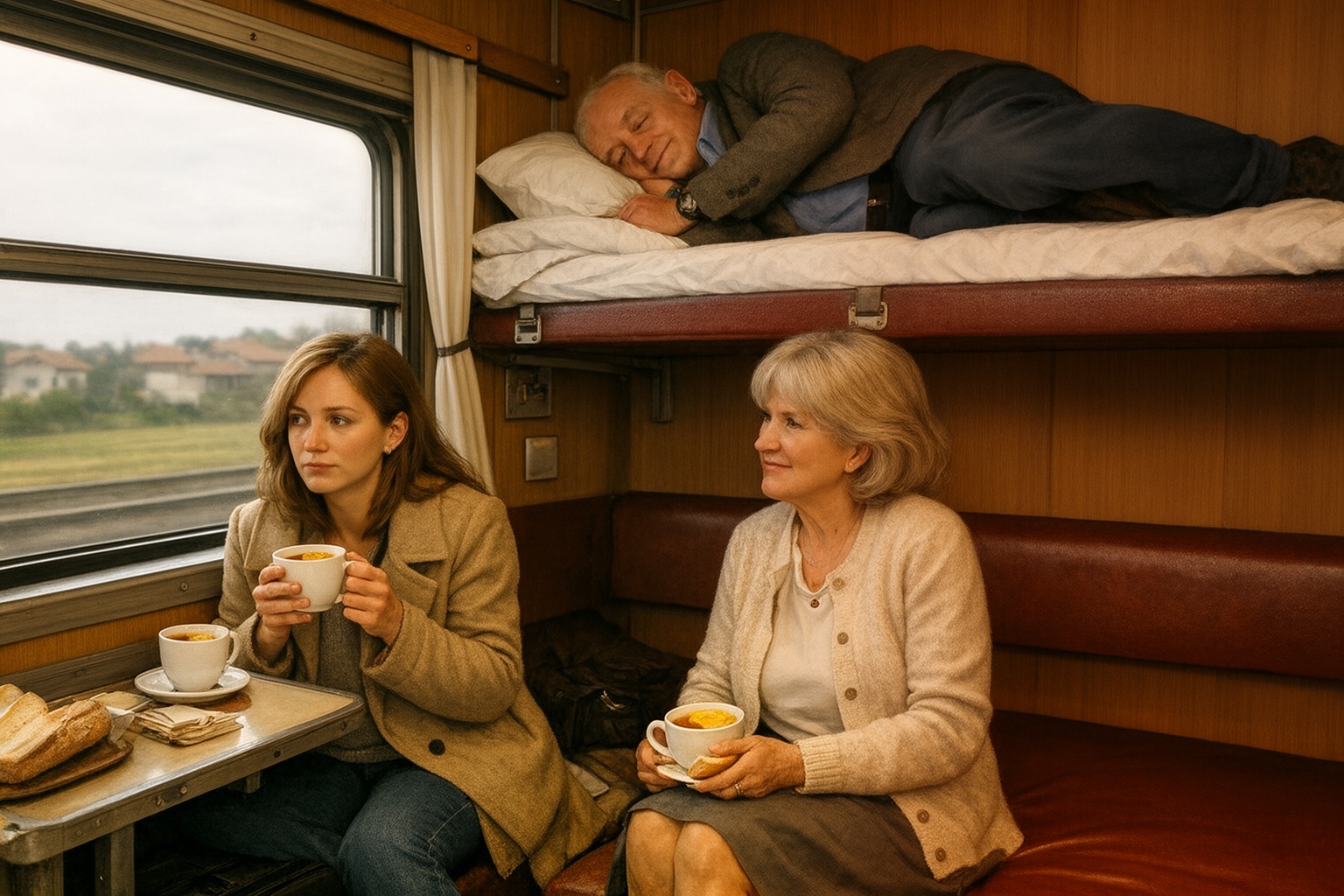 Az utastársak nagy csomagokkal érkeztek, Eszter pedig felajánlotta, hogy az egyiket betehetik az ő ülése alá. A férfi hálás pillantást vetett rá, majd mosolyogva megszólalt: a lányaik várják őket, ráadásul nem egyedül, lesz, aki segít a cipekedésben. A feleségére nézett, és mindketten meleg, összeszokott mosollyal reagáltak. Nem sokkal később a férfi felmászott a felső ágyra, és hamar elaludt.