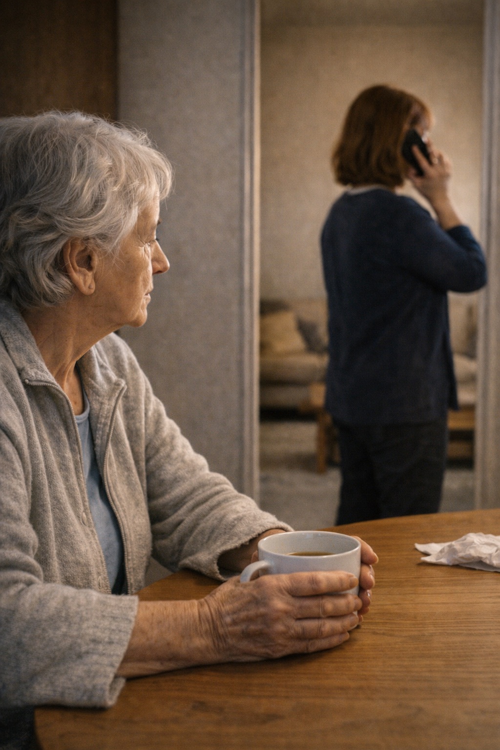 Erzsébet ült a konyhában, a kezében egy csésze teával, és nézte, ahogy Klára a nappaliban telefonál. A lánya háttal állt neki, a telefont a füléhez szorította, és beszélt. Gyorsan, élénken, ahogy mindig.