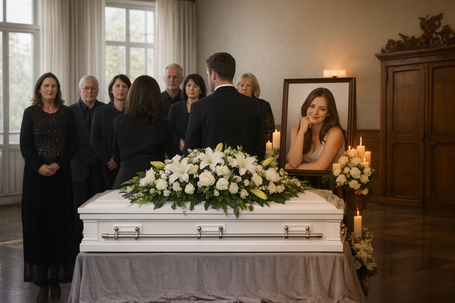 Amikor a templom ajtaja kinyílt, és Martin belépett, a levegő szinte megfeszült. Fekete öltönyt viselt, arca nyugodtnak tűnt, mintha gondosan felvette volna a részvét álarcát. A karján ott lógott egy magas, barna hajú nő, szűk fekete ruhában, olyan természetességgel kapaszkodva belé, mintha mindig is ott lett volna a helye.