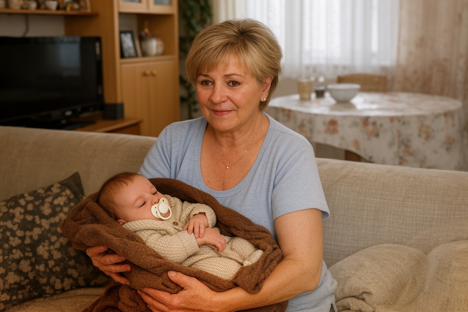 Óvatosan lefektette a kanapéra, kibontotta a plédet. Bézs kötött rugdalózó, apró kislány, szájában békás cumi. Legfeljebb egyhónapos lehetett.